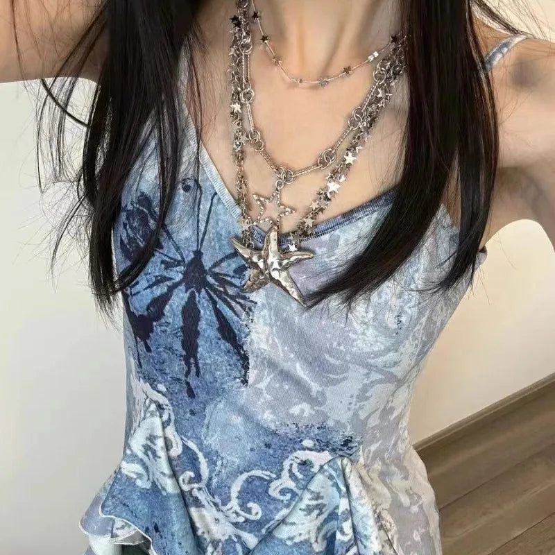 Asymmetrical Tie Dye Tank Top – Qarkash Blue Camis for Women | Niche Summer Streetwear