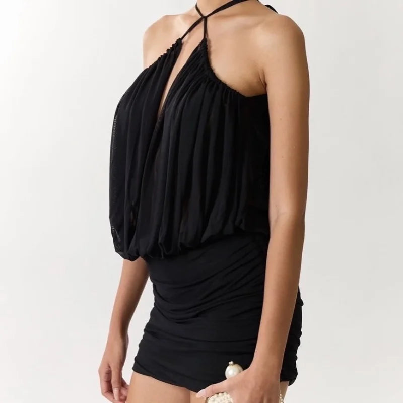 Sexy Halter Backless Mini Dress – Elegant Ruched Sleeveless Party Dress for Women