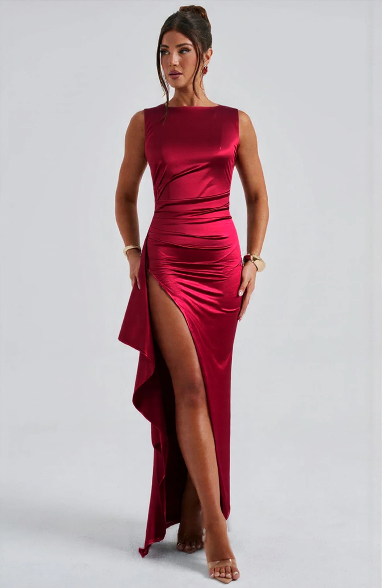 Dramatic Slit: High side slit adds a touch of seduction while ensuring freedom of movement.