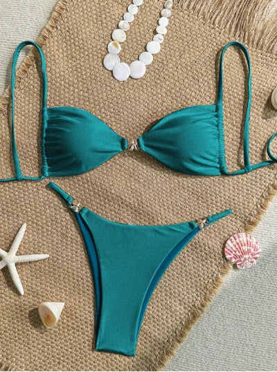 riangle Bikini Set – Solid Color Micro Thong Swimsuit for Women