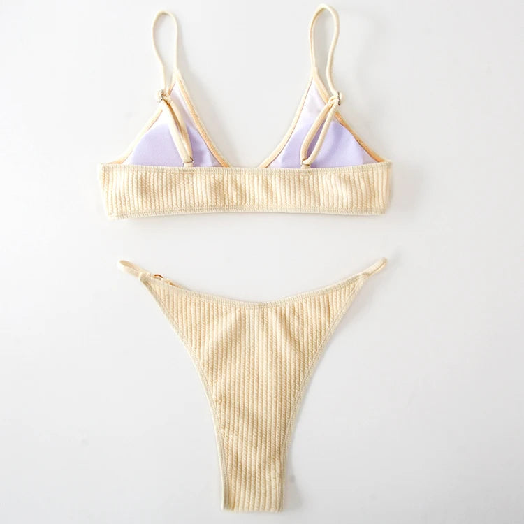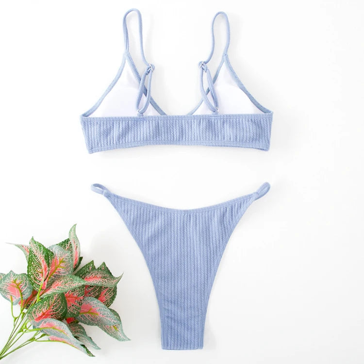 Simple Style Padded Bra Thong Swimsuit – 2025 Summer Collection