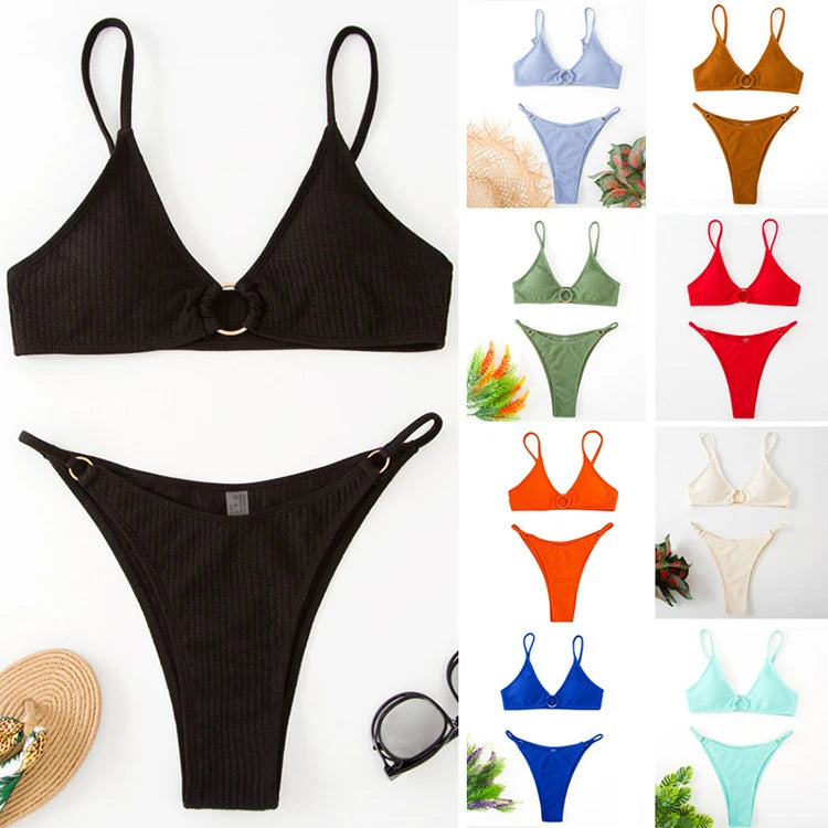Whether you're lounging poolside, heading to the beach, or curating Instagram-worthy vacation looks, this bikini set is your go-to statement swimwear. Available in a variety of bold and classic colors to match your mood or your tan.