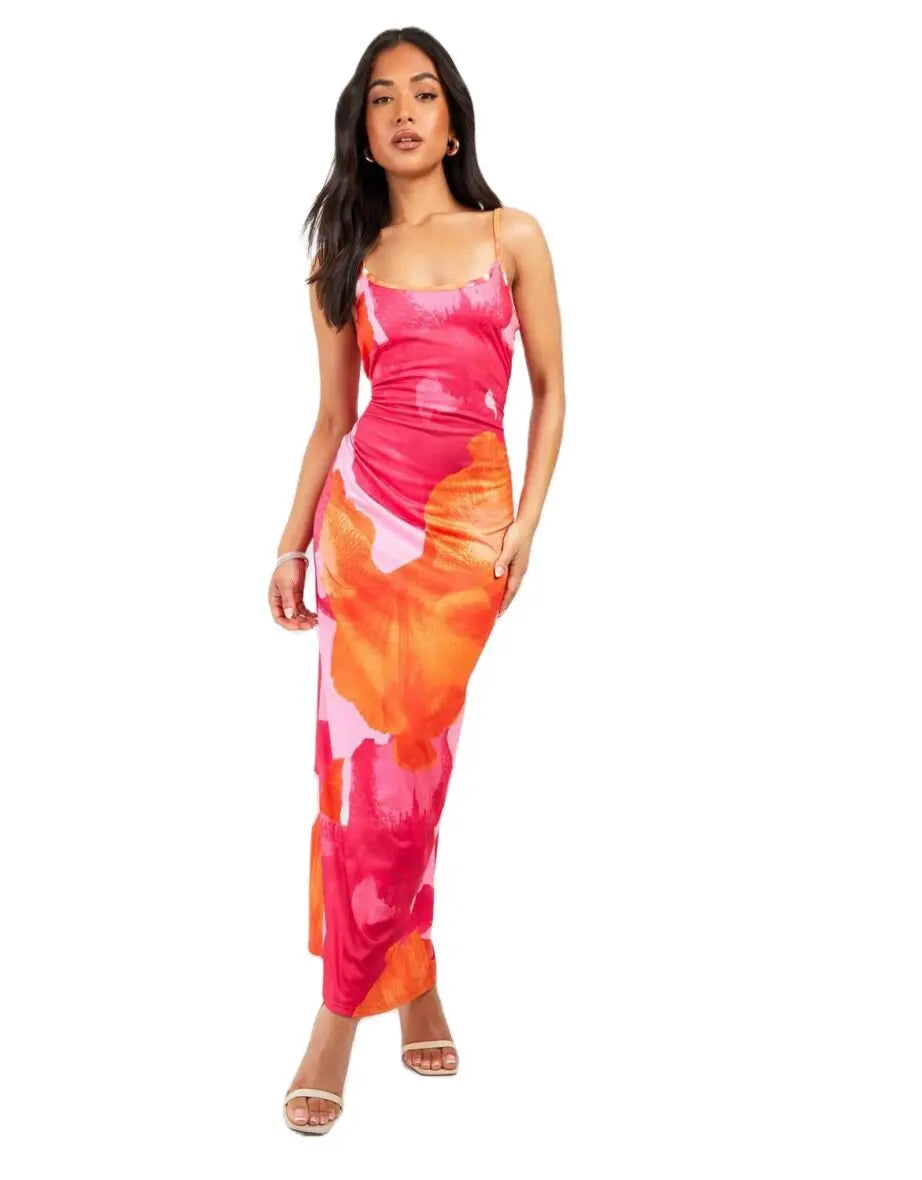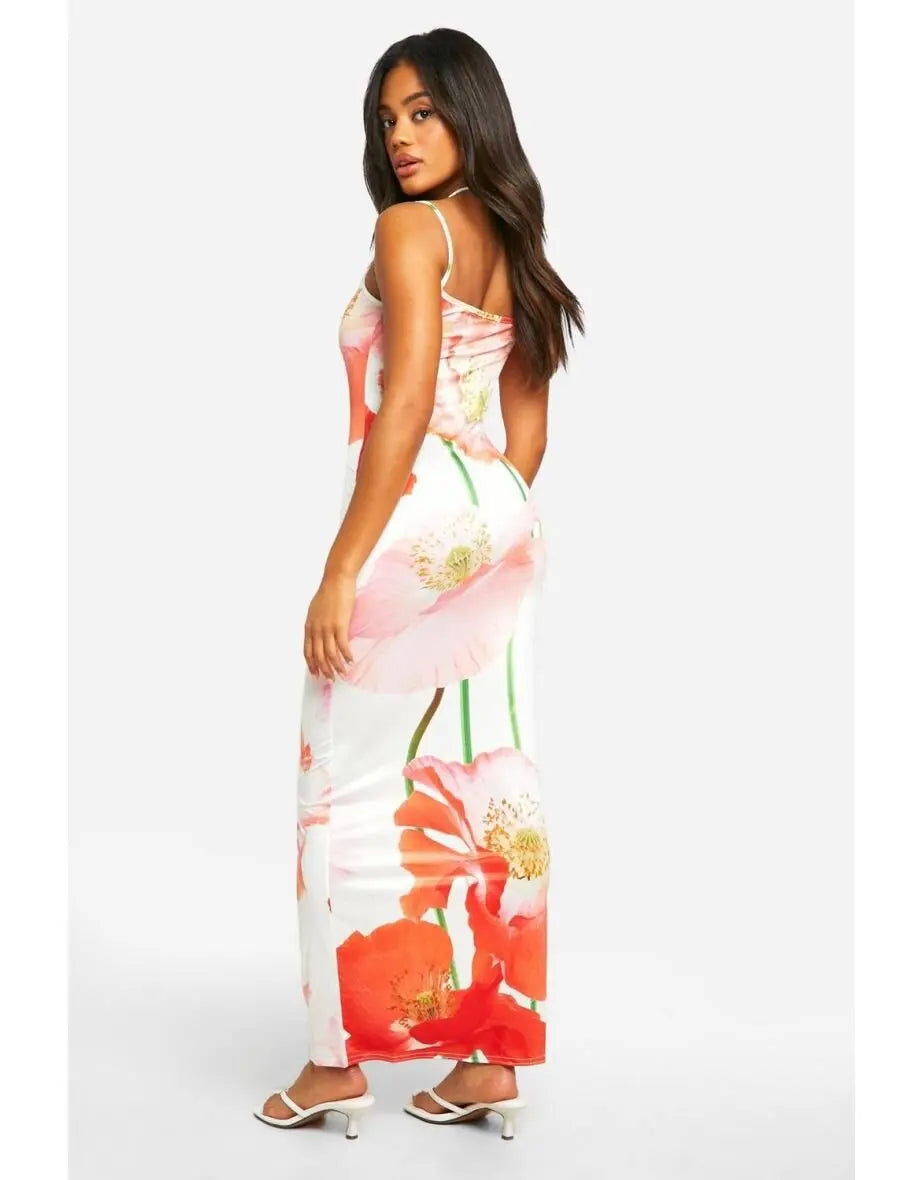 Women’s Y2K Fairy Floral Maxi Slip Dress – Summer Spaghetti Strap Slim Fit