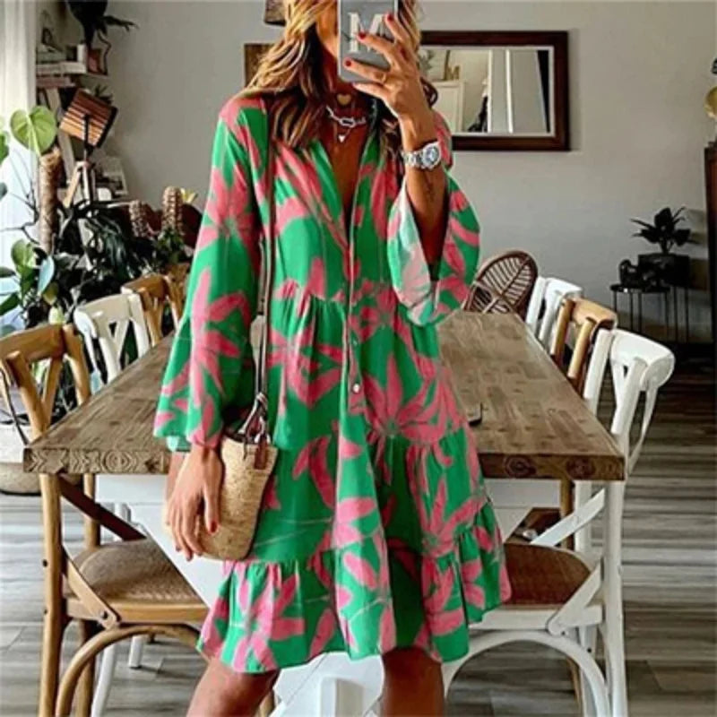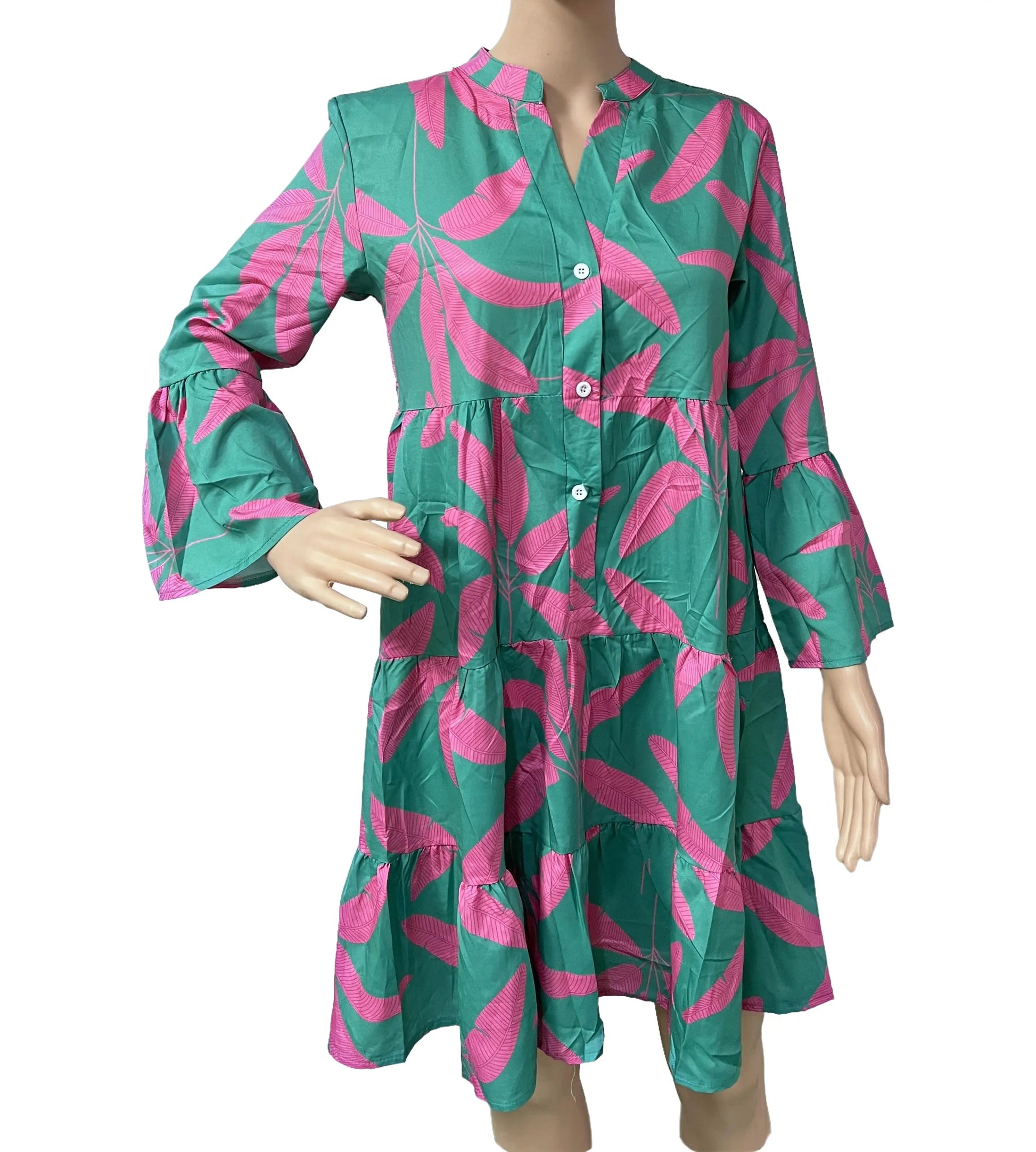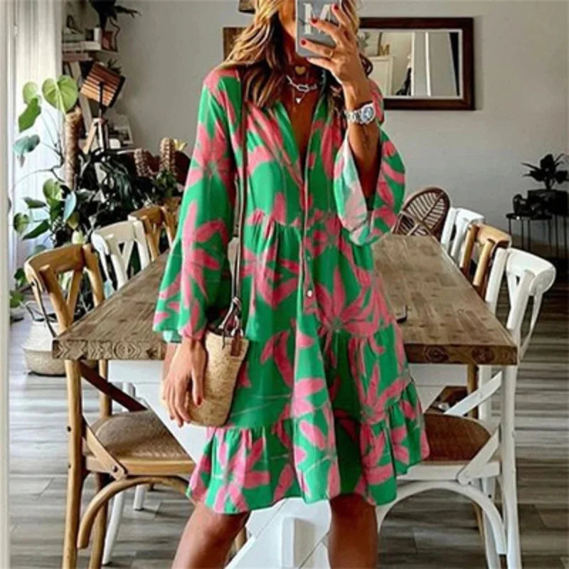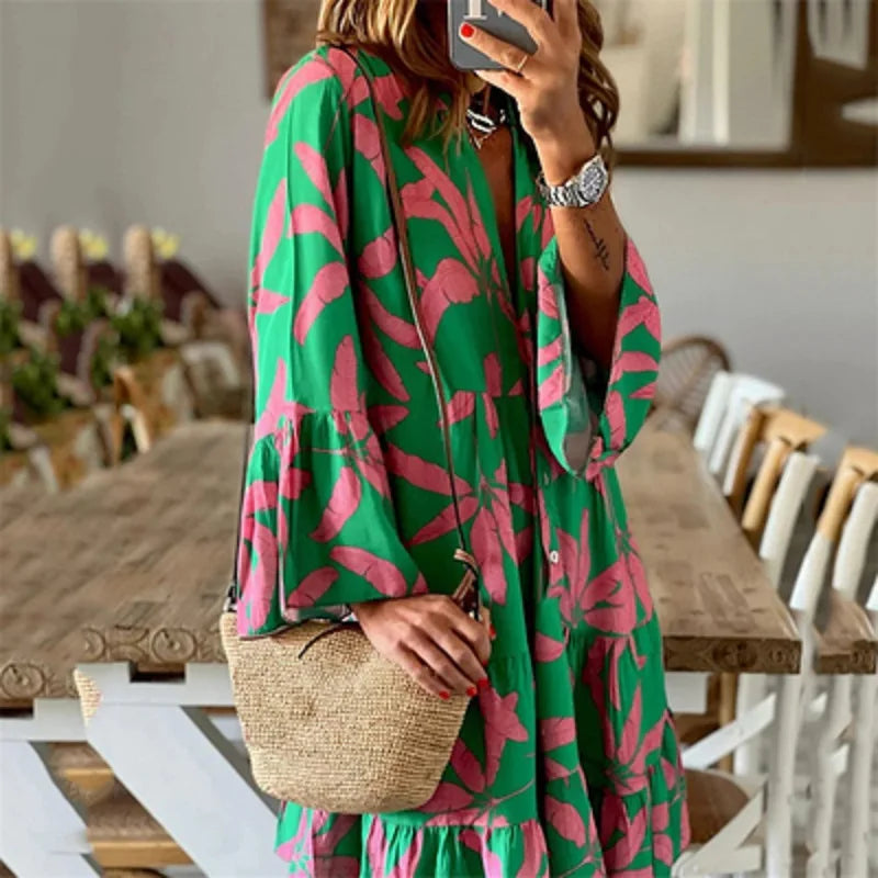 Add a bold pop of color to your wardrobe with this vibrant Women's Printed Long Sleeve Dress featuring eye-catching bell sleeves and a relaxed silhouette. Perfect for beach strolls, casual weekends, or laid-back brunch dates, this dress delivers comfort and effortless chic in one.