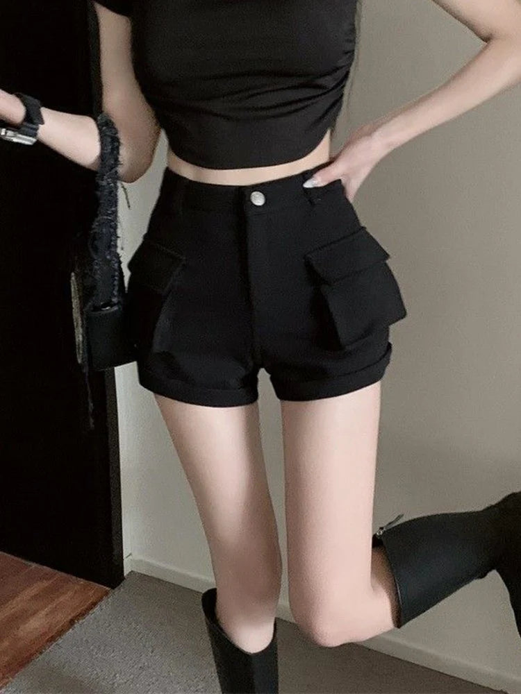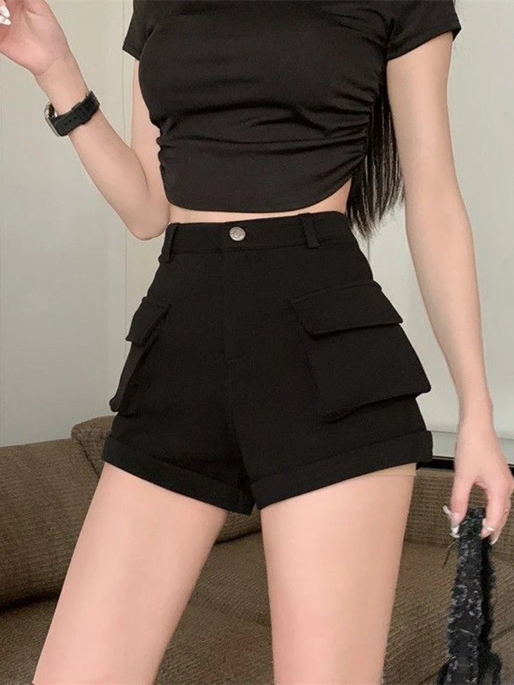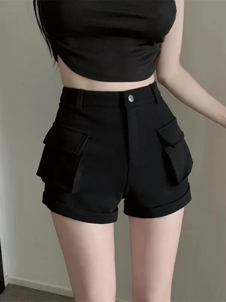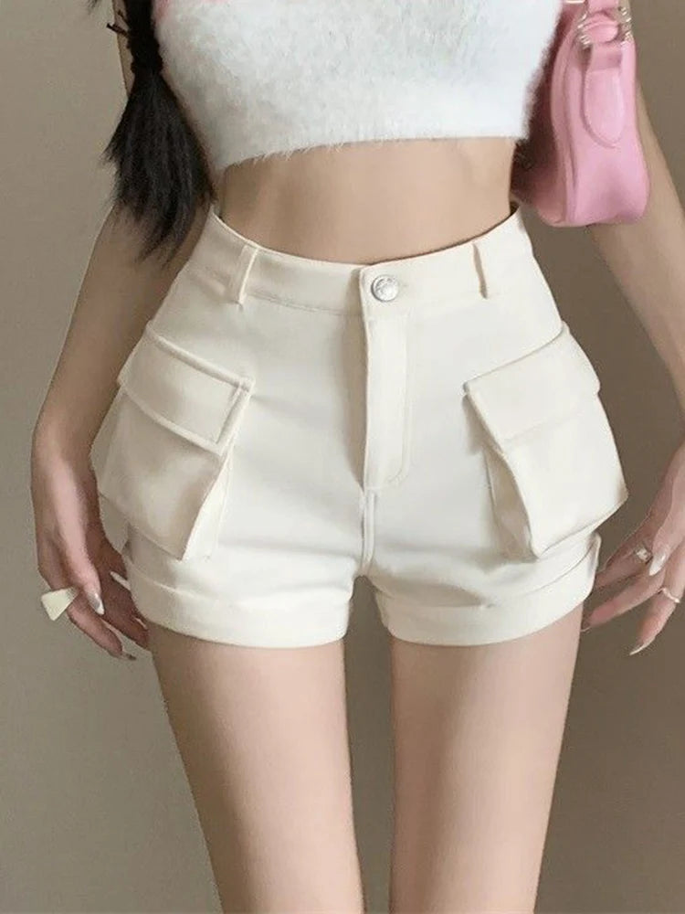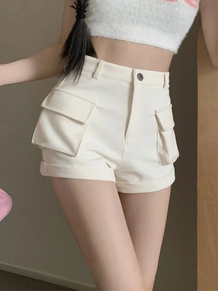 Zoki Korean Casual Cargo Shorts for Women - High Waist Streetwear with Pockets